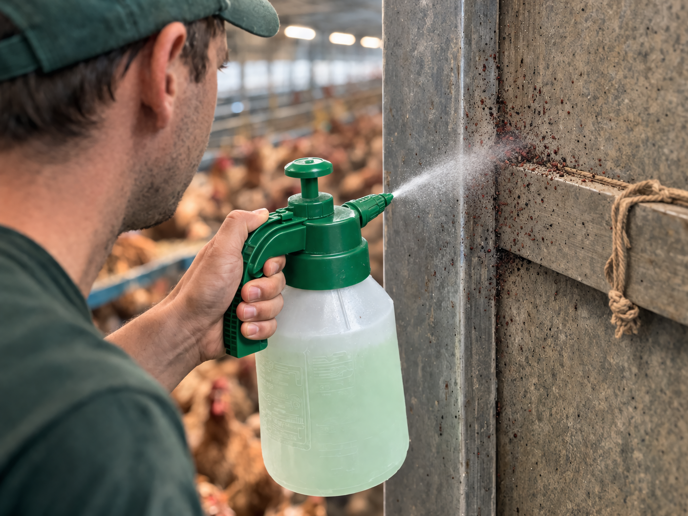 Den Inhalt in einen Handzerstäuber füllen. ADELE Milbenfrei® wird direkt auf die befallenen Stellen wie Hotspots und Nester gesprüht.